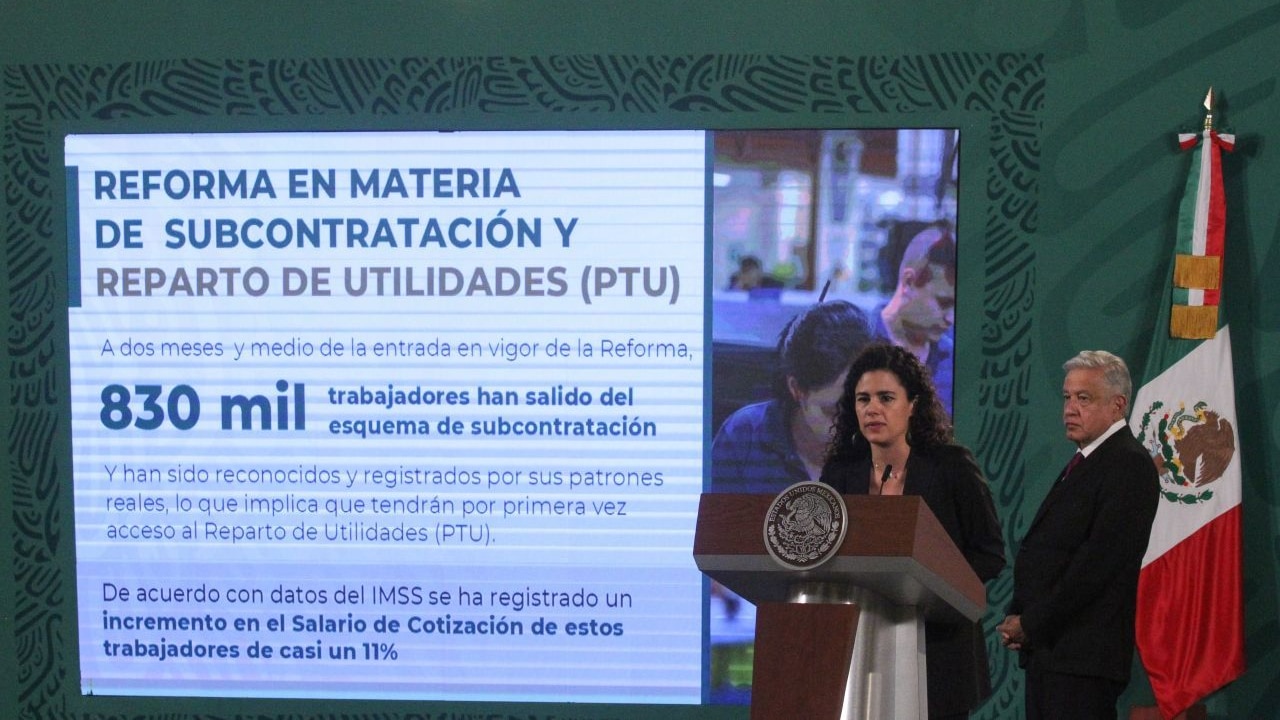La secretaria del Trabajo y Previsión Social, Luisa María Alcalde, informó que 830 mil trabajadores en México recibirán por primera vez el reparto de utilidades tras la reforma al outsourcing.