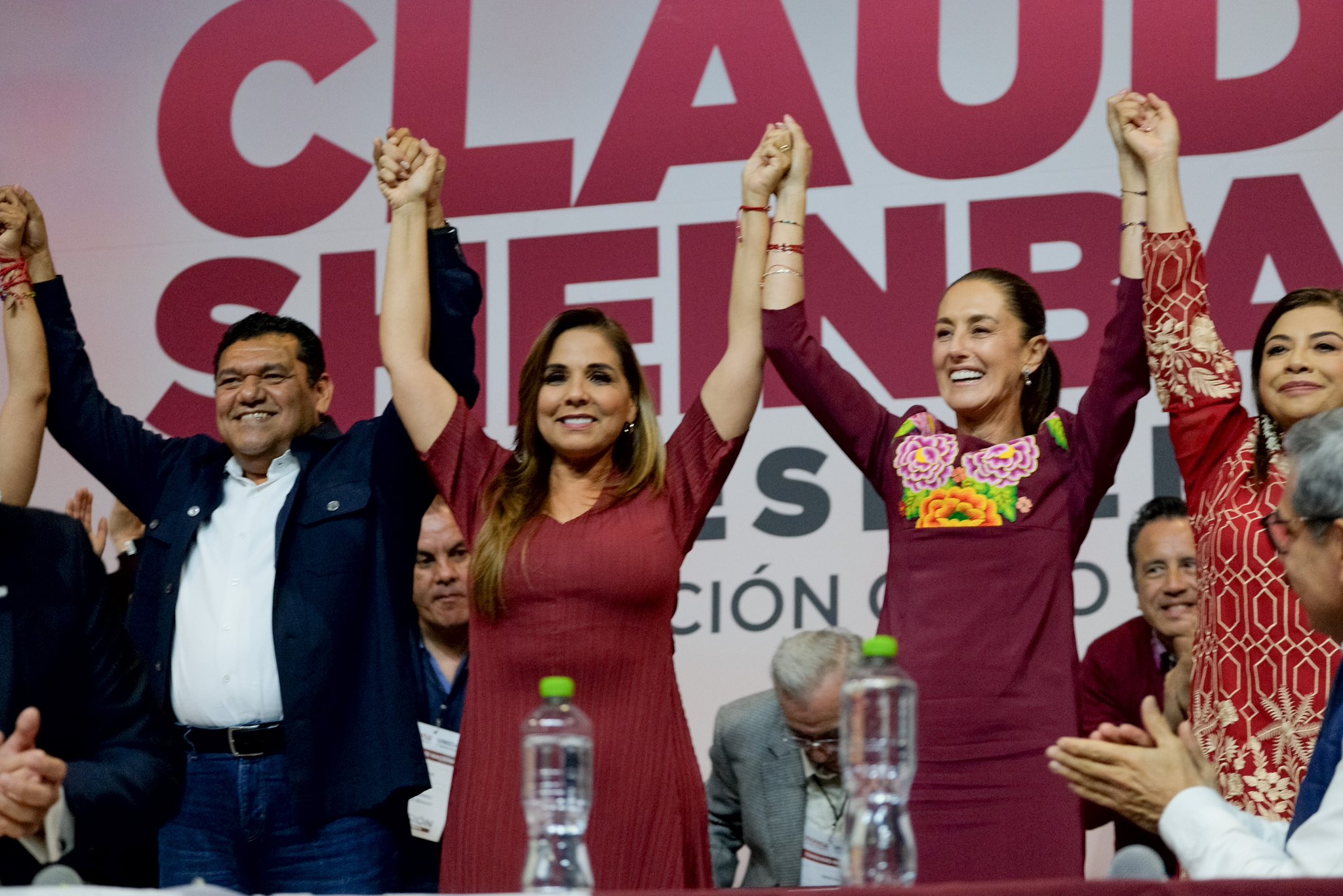 CDMX.- La gobernadora Mara Lezama Espinosa acompañó a Claudia Sheinbaum en la entrega de su constancia como candidata de Morena a la Presidencia de la República, que se celebró durante el consejo nacional de este partido.