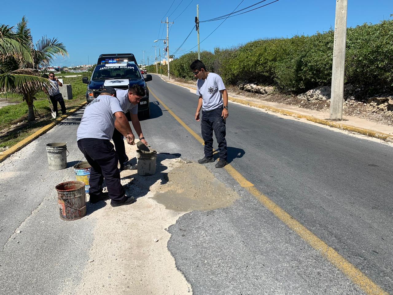 Con la finalidad de facilitar la libre circulación en diversas zonas de la isla, la Dirección General de Seguridad Pública y Tránsito Municipal (SPyTM), encabezada por Jaime Alberto Ongay Ortíz, implementó un programa emergente provisional de bacheo en tres puntos clave.