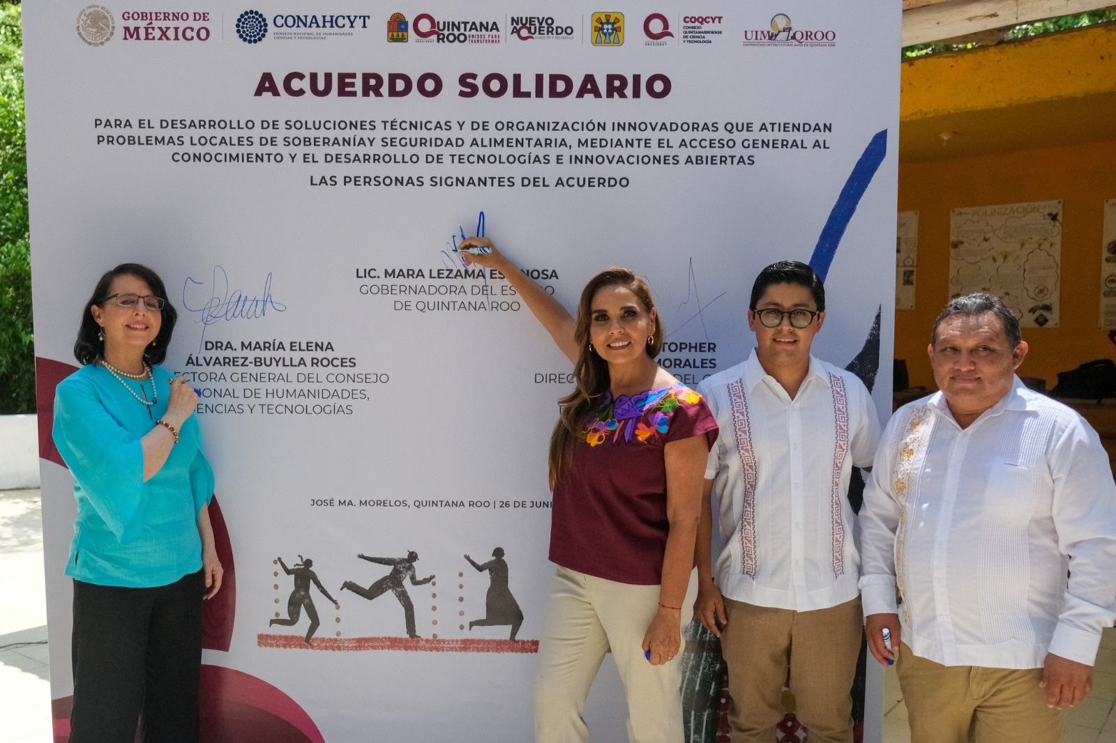 Mara Lezama gobernadora de Quintana Roo firmó un convenio de cooperación con el Conahcyt, para desarrollar soluciones técnicas e innovadoras que aborden problemas locales de soberanía y seguridad alimentaria.