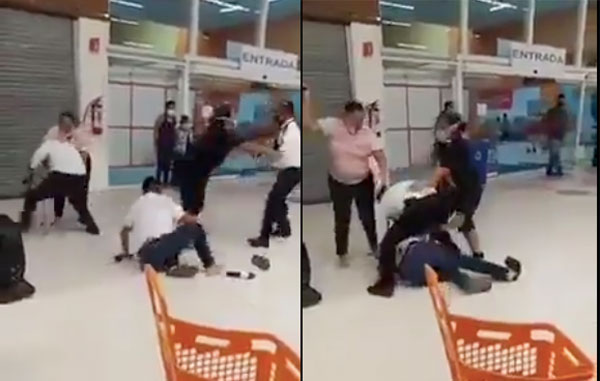 Los hechos se registraron en una tienda de la cadena Chedraui de Tuxpan, cuando el vigilante realizaba su trabajo de dejar pasar solo a una persona por familia por la contingencia del Coronavirus.