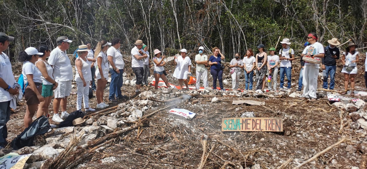 Dentro de la manifestación, los ambientalistas formaron con piedras la expresión S.O.S. en uno de los terrenos afectados, con la finalidad de que el presidente de la República, Andrés Manuel López Obrador, quien se encuentra en Quintana Roo, supervisando las obras del proyecto, pueda ver dicha señal cuando sobrevuele la zona.