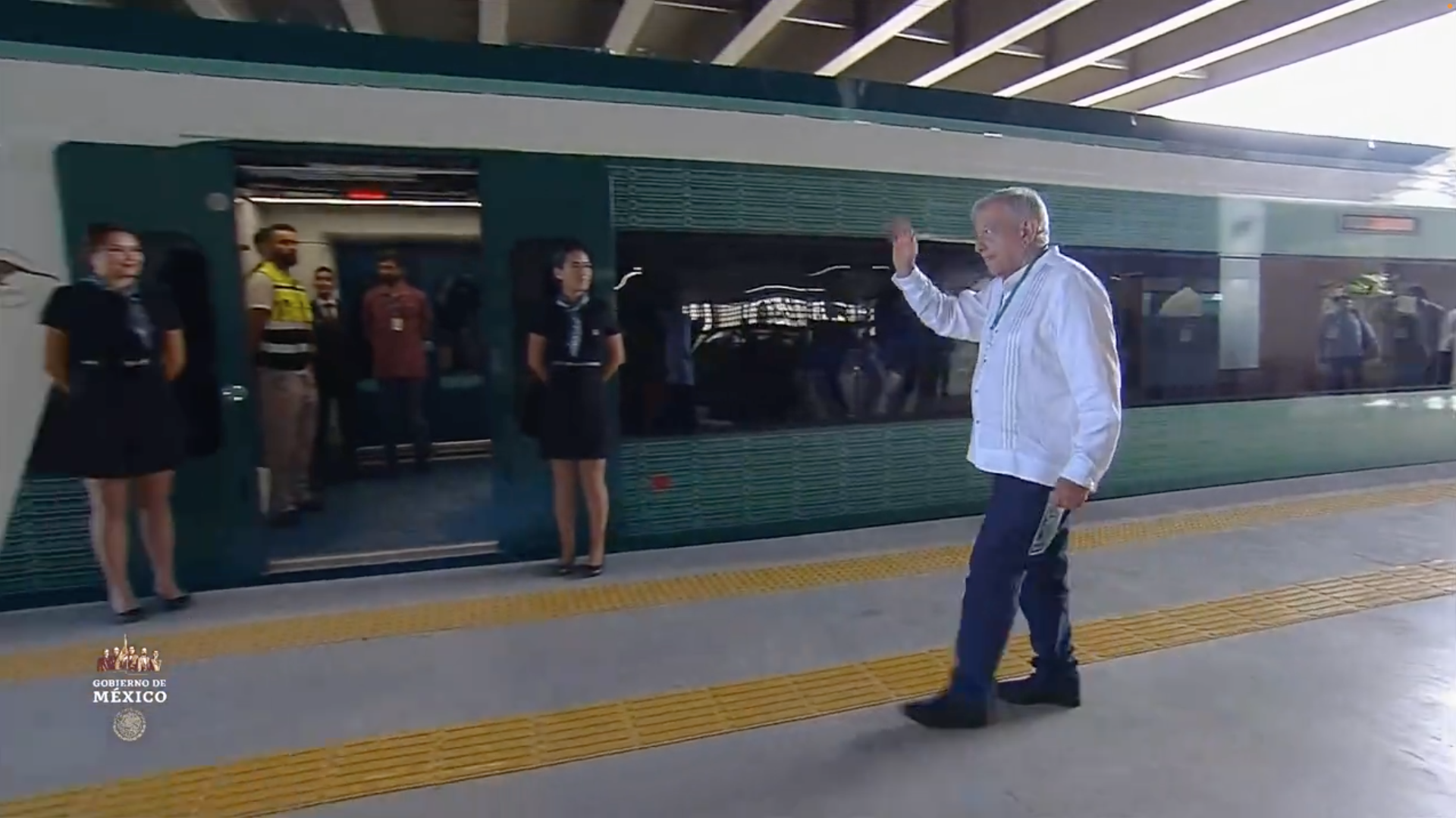 El presidente Andrés Manuel López Obrador encabeza el primer recorrido del Tren Maya de Campeche a Cancún, luego de que se dio por inaugurado el primer tramo del proyecto.