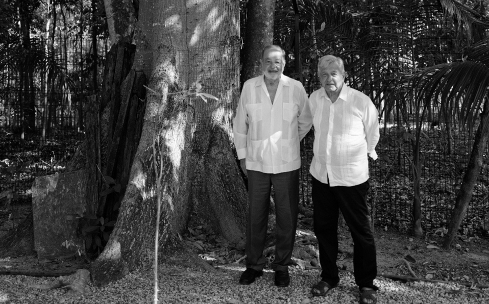 López Obrador acompañó la publicación con una imagen donde Slim y él aparecen bajo el mencionado árbol.