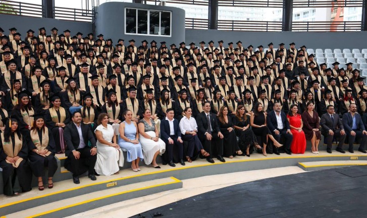 La Presidenta Municipal, Ana Paty Peralta, junto a la gobernadora, Mara Lezama, convivió con los 224 alumnos egresados de tres licenciaturas, una ingeniería y una especialidad de maestría de la Universidad Tecnológica de Cancún (UT), de la generación 2023-2025, a quienes exhortó a seguir adelante para desempeñarse como profesionales en sus áreas para consolidar un mejor Cancún.