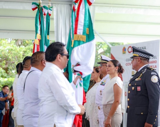 Como muestra del orgullo e identidad que distingue a los mexicanos y cancunenses, la Presidenta Municipal, Ana Paty Peralta, atestiguó la toma de protesta de escoltas vía control remoto que hizo a nivel nacional la Presidenta de México, Claudia Sheinbaum, así como participó en el abanderamiento a 26 escuelas cancunenses, lo cual realizó con la gobernadora Mara Lezama.