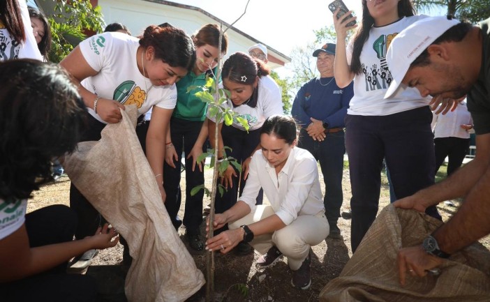 En el marco de la segunda fase del programa “Arboriza Cancún”, la Presidenta Municipal, Ana Paty Peralta, encabezó la plantación de 30 árboles de las especies Maculis, Chicozapote, Caoba y Chacá en el Conalep Cancún Plantel II, como parte de la edición “Arboriza Cancún en Tu Escuela”, que busca plantar más de 11 mil árboles en la ciudad.