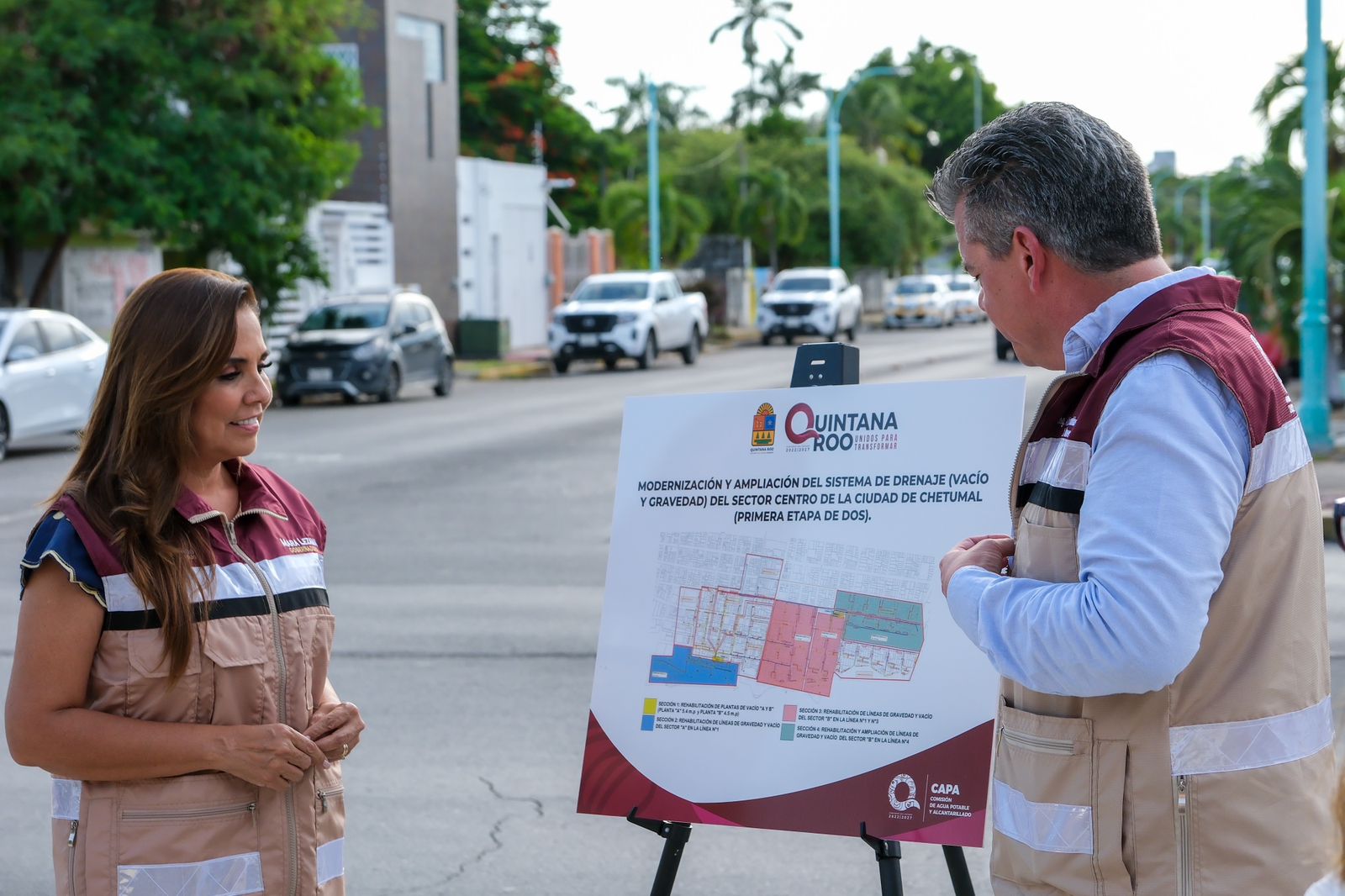 Para mejorar el servicio de saneamiento y evitar interrupciones en la recepción y tratamiento de aguas residuales que causan rebosamientos en calles y domicilios, generando daños patrimoniales, a la salud, al medio ambiente y que perjudican la imagen de la capital, la gobernadora Mara Lezama Espinosa anunció la primera etapa de la modernización y ampliación del sistema de drenaje por vacío y gravedad en el sector Centro de Chetumal.