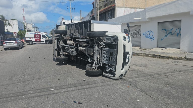 Un fuerte accidente vehicular que incluyó la volcadura de una camioneta fue registrado este lunes en la zona céntrica de Cancún, dejando cuantiosos daños materiales y una persona lesionada. Las autoridades correspondientes ya se encuentran trabajando en el deslinde de responsabilidades.