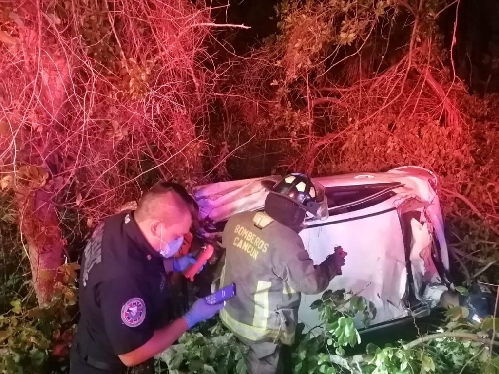 Tres personas resultaron heridas, una de ellas de gravedad, luego que el vehículo en el que viajaran se salió de la vía asfáltica y cayera al manglar, en el Kilómetro 23 de la Zona Hotelera de Cancún.
