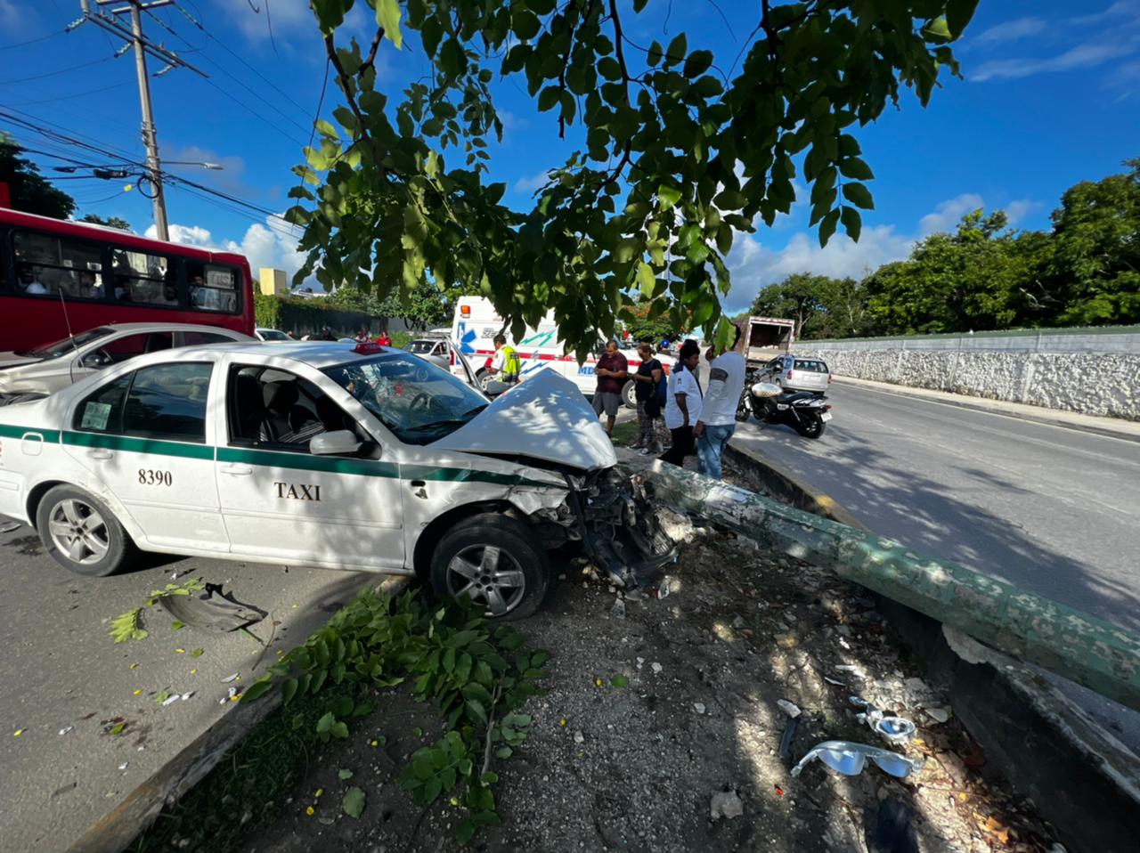 La mañana de este jueves un aparatoso accidente se registró en las inmediaciones de la Avenida Nichupté a espaldas del batallón militar, el taxi quedó atravesado en el carril que va hacia el centro de la ciudad.