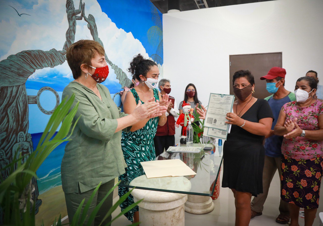 Playa del Carmen.- Silvia Hernández Argüelles, de 35 años, recibió de manos de la presidenta Laura Beristain Navarrete su acta de nacimiento y agradeció el contar ahora con el documento que le permitirá realizar varios trámites. Todo esto sucedió en el programa “Todos Somos Solidaridad” que acerca trámites y servicios a todos los rincones del municipio.