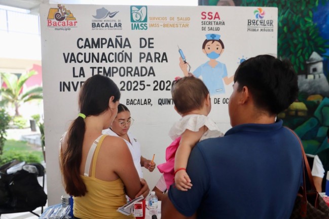 Velando por la salud de las y los bacalarenses esta mañana dio inicio la Campaña de Vacunación para la Temporada Invernal 2025-2026 bajo el lema ¡Por tu bienestar y el de tu familia, vacunate!por parte de la dirección de Desarrollo Social de la mano de la Coordinación Municipal de Salud y el Hospital Integral de Bacalar.