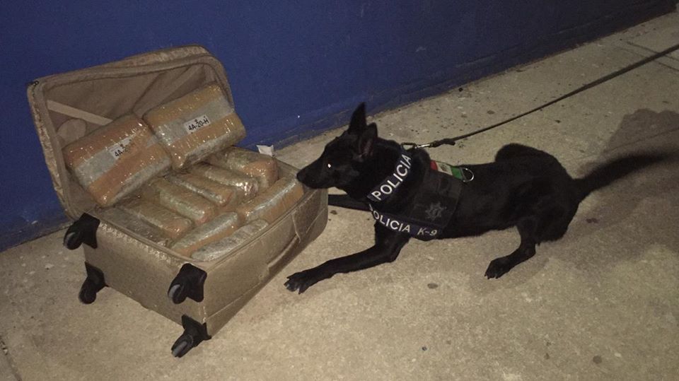 Elementos de la Unidad Canina de la Secretaría de Seguridad Pública y Tránsito Municipal de Solidaridad aseguraron 11 paquetes envueltos cada uno con plástico transparente y cinta adhesiva de color café que en su interior contenían hierba verde y seca con las características de la marihuana, cuando realizaban vigilancia preventiva en las inmediaciones de la central de autobuses en la colonia Centro.