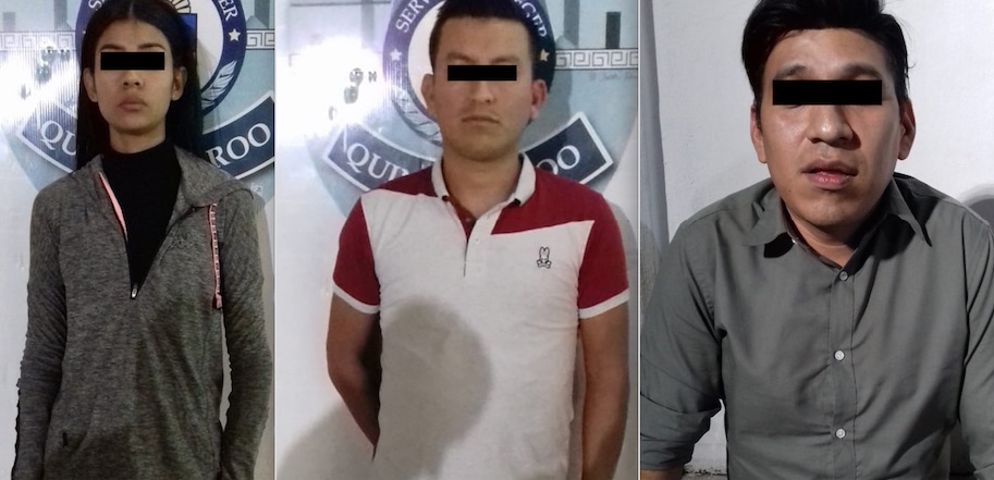 Elementos de la Policía Quintana Roo en una efectiva reacción durante un recorrido de prevención y vigilancia en la Supermanzana 39, lograron la detención de dos masculinos y una fémina que se identificaron como Karen Lizbeth “N” de 27 años, Esli “N” de 29 años y Guillermo “N” de 32 años de edad, por el delito de posesión de droga.