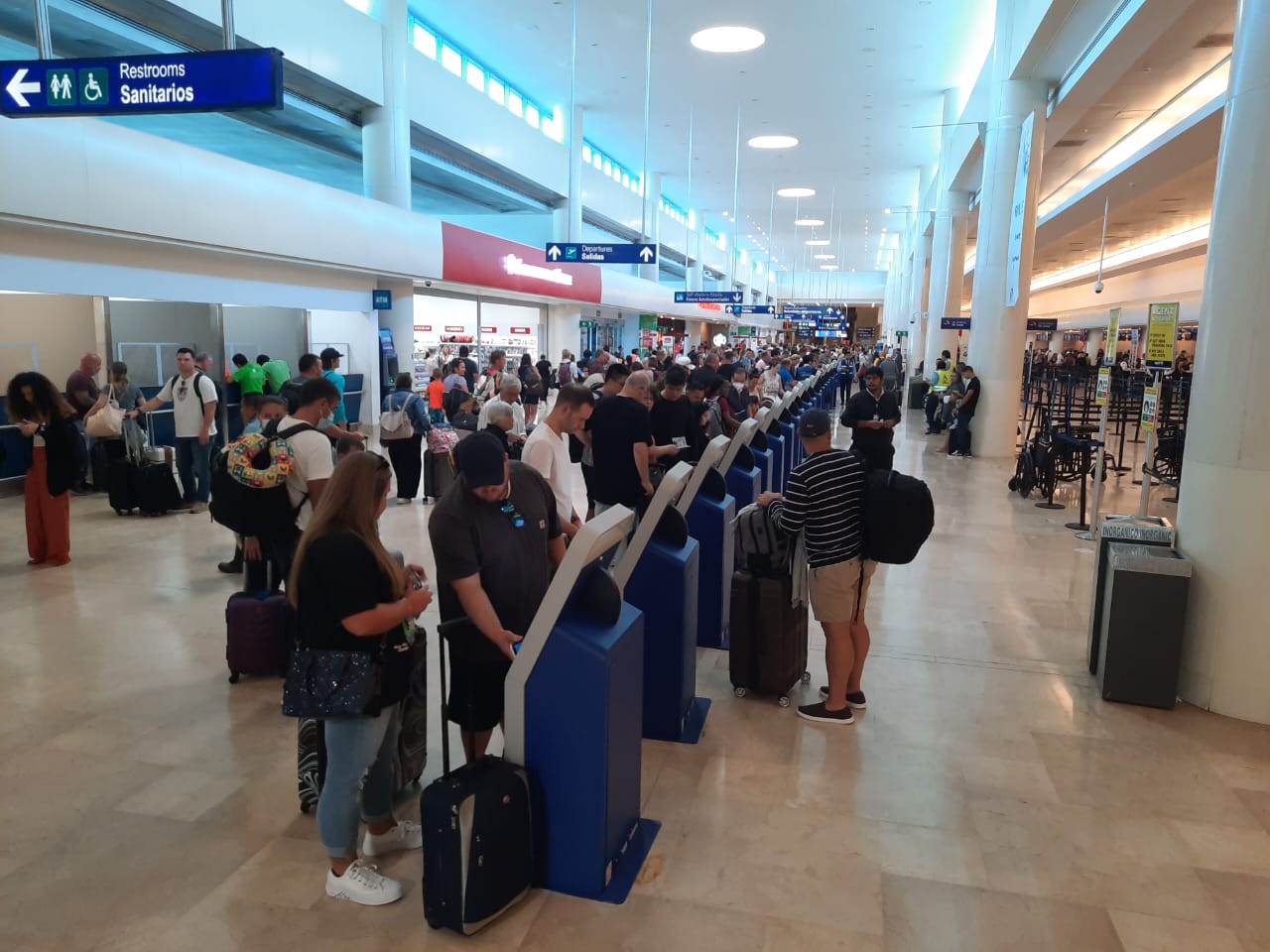Aerolíneas con operaciones programadas para hoy 9 de diciembre: Aeromar, Aeroméxico, Air Canada, Air France, Air Transat, Alaska, American Airlines, Arajet, Avianca, British Airways, Condor, Conviasa, Copa, Delta, Eurowings, Evelope, Frontier, Gol Líneas Aéreas, Jet Air, JetBlue, Lan Perú, Magnicharter, Sky Airlines Perú, Southwest, Spirit, Sun Country, Sunwing, Swoop, TAG Airlines, Thomson, Tuifly Nordic, Turkish Airlines, United Airlines, Viva Aerobús, Viva Air Colombia, Volaris, Volaris Costa Rica, Volaris Salvador, West Jet, Wingo, World2Fly.