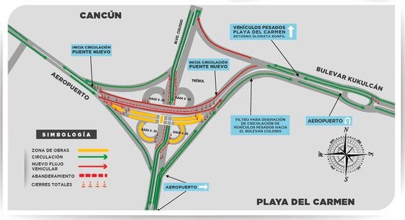 Los vehículos que circulen de zona hotelera a Playa del Carmen, deberán dirigirse al aeropuerto para retornar y tomar la Colosio.