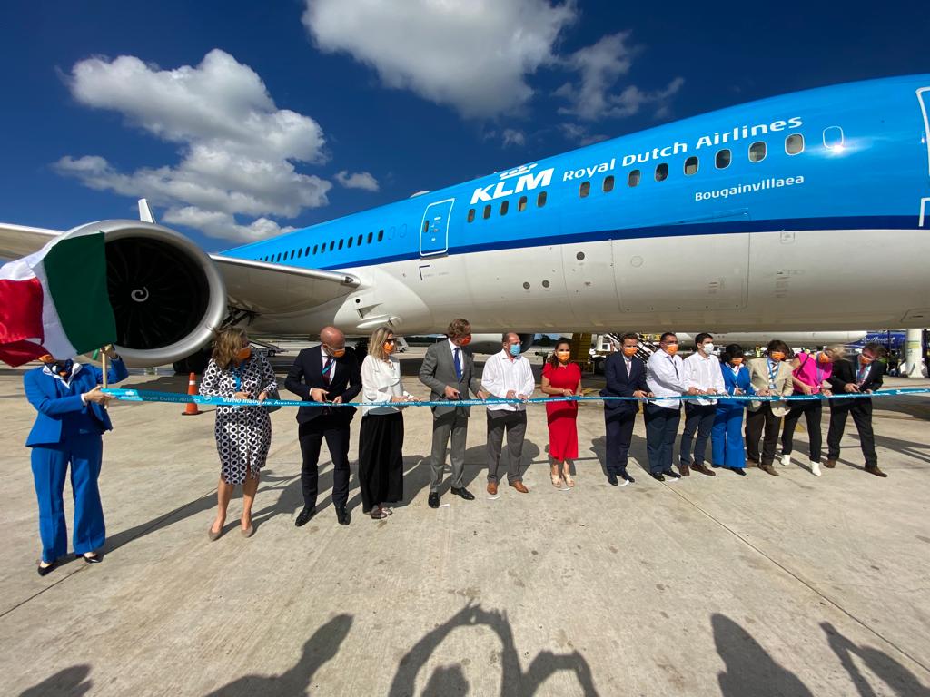 Desde el 2 de noviembre de 2021, KLM operará hasta cinco vuelos semanales entre el Aeropuerto Schiphol en Ámsterdam y Cancún, los martes, jueves, viernes y sábado. El quinto vuelo semanal se agregará desde el 19 de diciembre de 2021 hasta el 16 de enero de 2022 los domingos. El Boeing 787-9 tiene 30 asientos en World Business Class (el nombre que le da KLM a su clase ejecutiva) y 264 en Economy (el nombre que le da KLM a su clase turista).