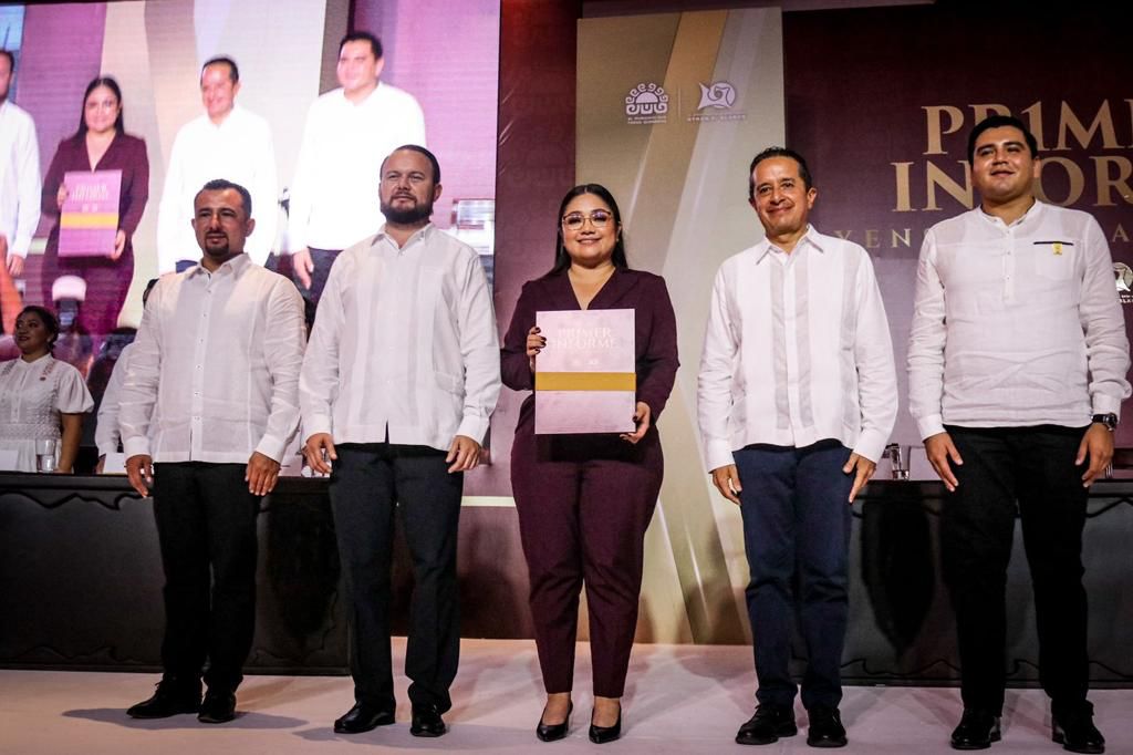 En su intervención, el gobernador del estado de Quintana Roo, Carlos Manuel Joaquín González, felicitó a la edil othonense por la entrega de su primer informe de gobierno; indicó que el trabajo en unidad trajo resultados sólidos al estado, en la construcción de un destino más amplio que beneficie a las y los quintanarroenses.