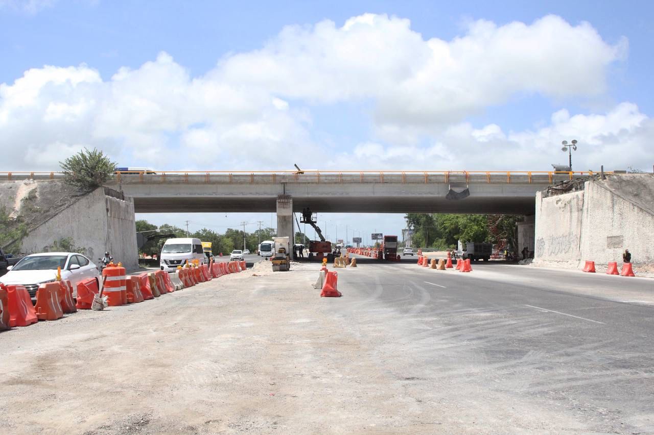 De acuerdo con información emitida por la Secretaría de Infraestructura Comunicaciones y Transportes (SICT), los trabajos en el Blvd. Luis Donaldo Colosio, cuentan con un avance del 69 por ciento; en el caso del distribuidor aeropuerto, se tiene un progreso del 64 por ciento; mientras que la obra del Puente Vehicular Nichupté registra 21 por ciento de su construcción; la obra de la Av. Chac Mool tiene un avance del 13 por ciento y se está comenzando a trabajar con la conexión del Aeropuerto Internacional de Cancún con la estación del Tren Maya.