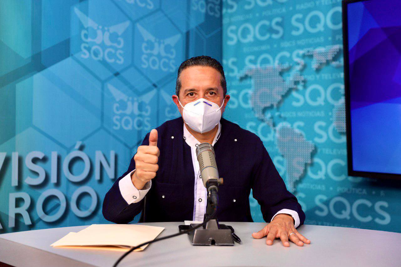 En el programa Conexión Ciudadana, que se transmitió por el Sistema Quintanarroense de Comunicación Social y las redes sociales de la Coordinación General de Comunicación del Gobierno del Estado, el gobernador Carlos Joaquín alertó a la población sobre la presencia de personas que ofrecen vacunas contra el Covid-19 a cambio de datos personales y copias de credenciales de elector, lo que no es verdad.