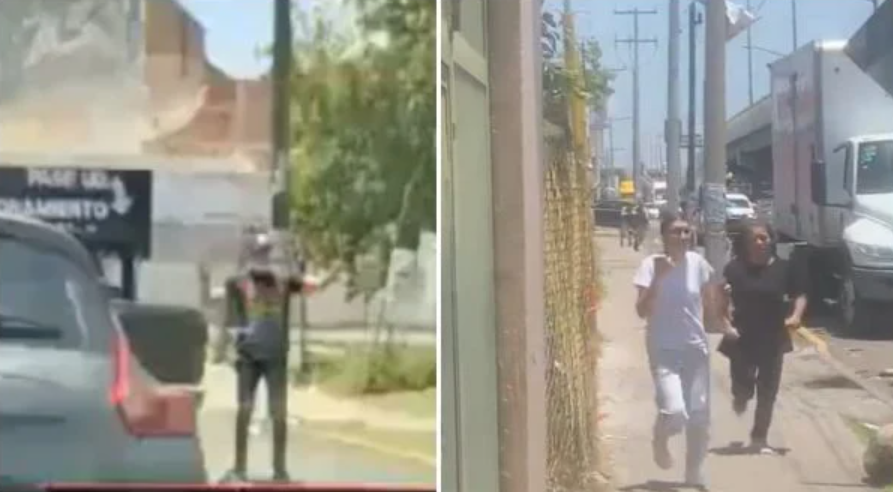 En un video que circula en redes sociales, se ve a personas que en inmediaciones de la central de abastos de Celaya, corren para protegerse ante las detonaciones de armas de fuego que se registraron en el lugar.
