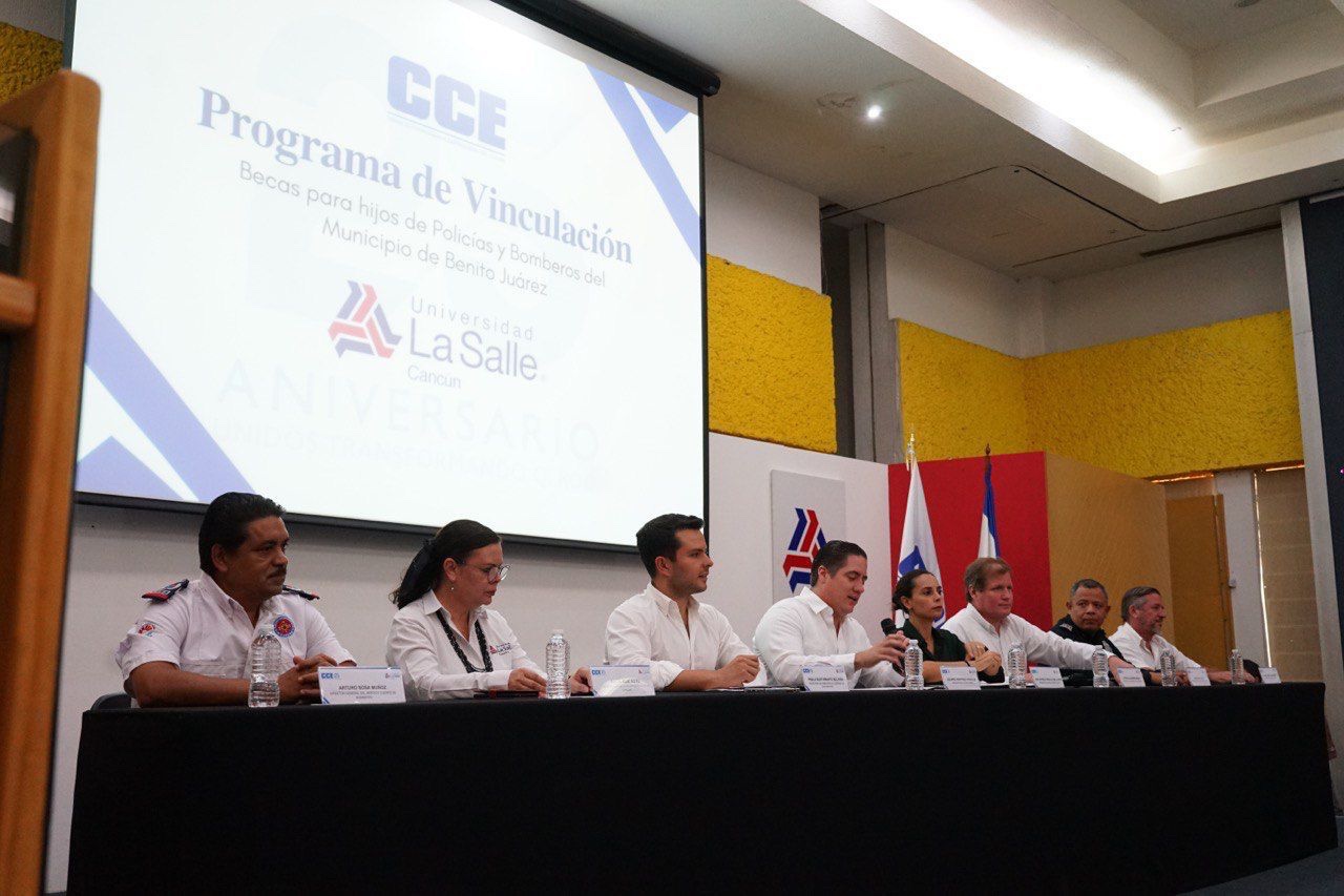 El Secretario de Bienestar, Pablo Bustamante Beltrán, destacó que el corazón del Nuevo Acuerdo de la Gobernadora Mara Lezama es hacer equipo con la sociedad, por lo que, las becas que el Consejo Coordinador Empresarial del Caribe (CCE) y la Universidad La Salle otorgarán a hijas e hijos de Policías y Bomberos de Cancún, serán herramientas fundamentales para abrirles la puerta a un mejor futuro.