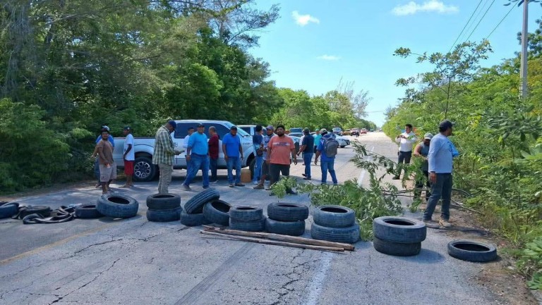 Pobladores de Mahahual, perteneciente al municipio de Othón P. Blanco, en la Zona Sur de Quintana Roo, realizaron un bloqueo en la carretera Mahahual-Cafetal este 23 de julio de 2025, a la altura de su entronque con rumbo a Xcalak.