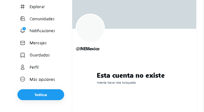 Usuarios de la red social reportaron que el perfil dejó de cargar y que los tuits ya publicados no eran visibles. A algunos incluso les apareció el mensaje de que la cuenta @INEMexico no existía.