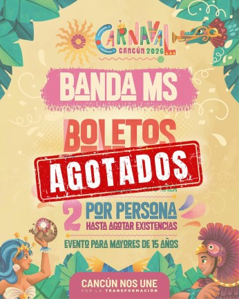 Cancún-Autoridades municipales de Cancún informaron que los boletos para la presentación de la Banda MS se encuentran completamente agotados, confirmando el éxito del evento de cierre del Carnaval Cancún 2026.