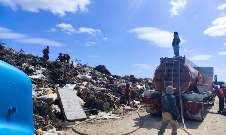 Durante las labores para combatir el incendio se contó con el apoyo de una pipa particular, lo que permitió reforzar el suministro de agua y agilizar los trabajos.