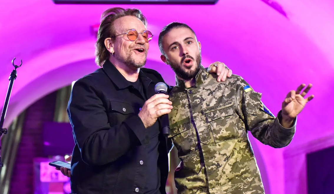Bono sorprendió al visitar Ucrania y ofrecer un concierto en el metro de Kiev en el que pidió por la paz y el fin de la invasión rusa