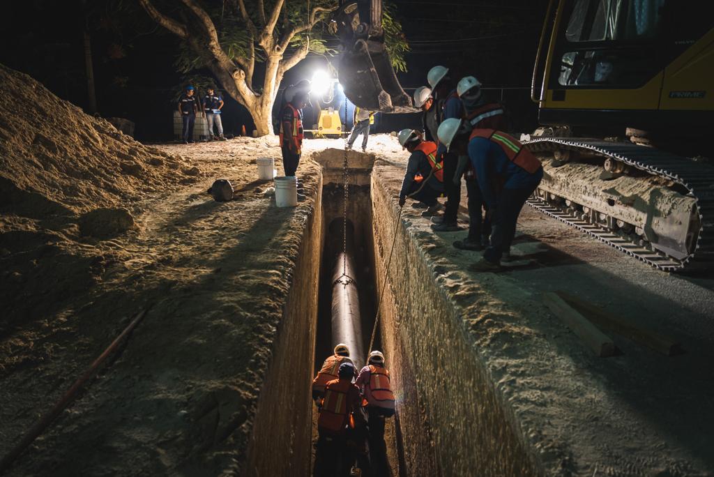Desde el momento en que se reportó la fuga, las brigadas de Aguakan han acudido para trabajar en su atención y reparación, para reestablecer el suministro a la ciudad en el menor tiempo posible.