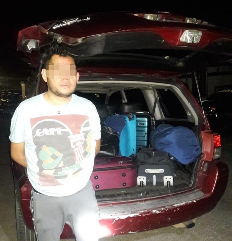 Sin embargo los oficiales le dieron alcance cuadras más adelante, al interrogarlo sobre las maletas y artículos que transportaba, el sujeto no pudo comprobar las pertenencias, por lo que fue trasladado a la corporación, donde los elementos fueron notificados del reporte de sustracción de pertenencias de un vehículo por medio de un «cristalazo» en un centro comercial.