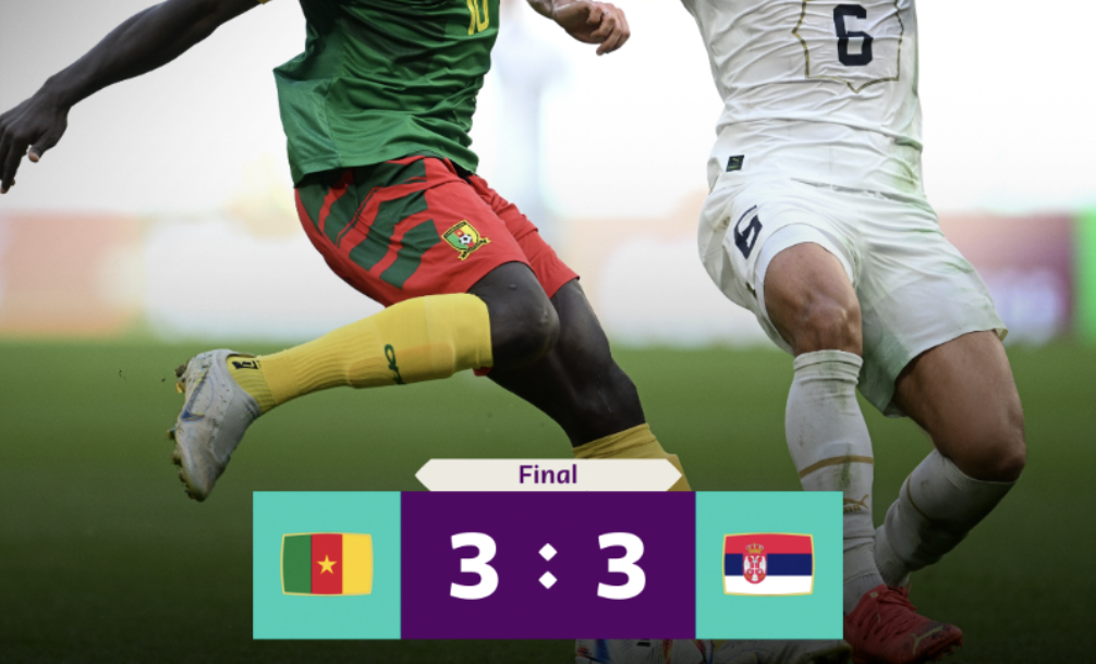 Camerún y Serbia brindaron uno de los partidos más espectaculares de la Copa del Mundo hasta el momento, el cual terminó con empate 3-3 y dejó con un punto a ambas selecciones tras dos encuentros disputados dentro del Grupo G.