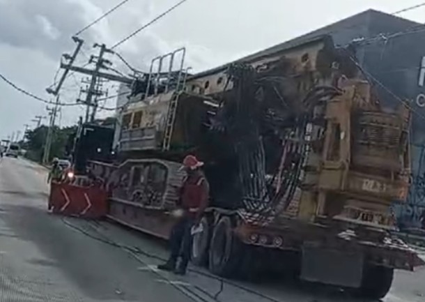 El accidente ocurrió cuando una maquinaria pesada que transportaba el camión de carga se trabó en el cableado elevado, en el bulevar Luis Donaldo Colosio, frente a la empresa Toyota, en dirección a Playa del Carmen