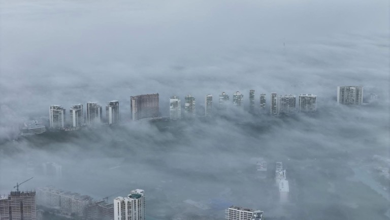 La alcaldesa de Cancún, Ana Patricia Peralta de la Peña, compartió una serie de fotografías en las que se vio que parte de la ciudad fue cubierta por un banco de niebla y que fue vista la mañana de este lunes 30 de diciembre.