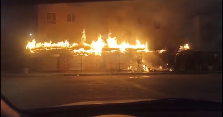 Según los primeros reportes, cuatro sujetos arrojaron artefactos incendiarios contra el local, ubicado cerca del fraccionamiento Cielo Nuevo, justo cuando los empleados se disponían a cerrar.