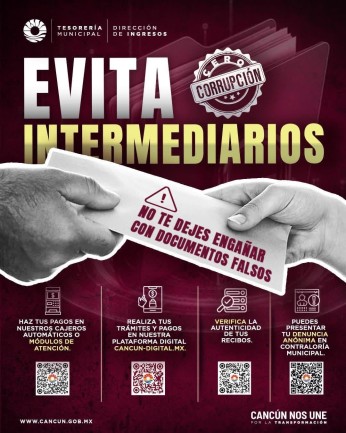 La Contraloría Municipal recibe quejas o denuncias contra servidores públicos vía correo electrónico canalquejasdenuncias@outlook.com y en el número 998 887 9876, de lunes a viernes de 9:00 a 16:00 horas, así como en el Sistema de Recepción de Quejas y Denuncias (SIREQUED), a la que se puede acceder a través de la Contraloría Municipal que recibe quejas o denuncias contra servidores públicos vía correo electrónico canalquejasdenuncias@outlook.com y en el número 998 887 9876, de lunes a viernes de 9:00 a 16:00 horas, así como en el Sistema de Recepción de Quejas y Denuncias (SIREQUED), a la que se puede acceder desde la página oficial del Ayuntamiento a través del enlace https://denunciacorrupcion.cancun.gob.mx/denuncia en donde se llenarán los formularios de manera confidencial.