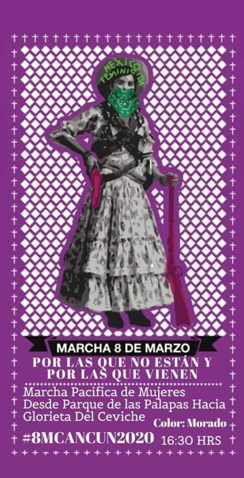 El próximo domingo 8 de marzo se llevará a cabo la Mega Marcha feminista: «Paramos juntas y juntas avanzamos», que saldrá desde las 4:30 de la tarde a las calles de Cancún, la concentración será en Malecón Tajamar y a las 5 de la tarde comenzará la marcha hacia el Ceviche.
