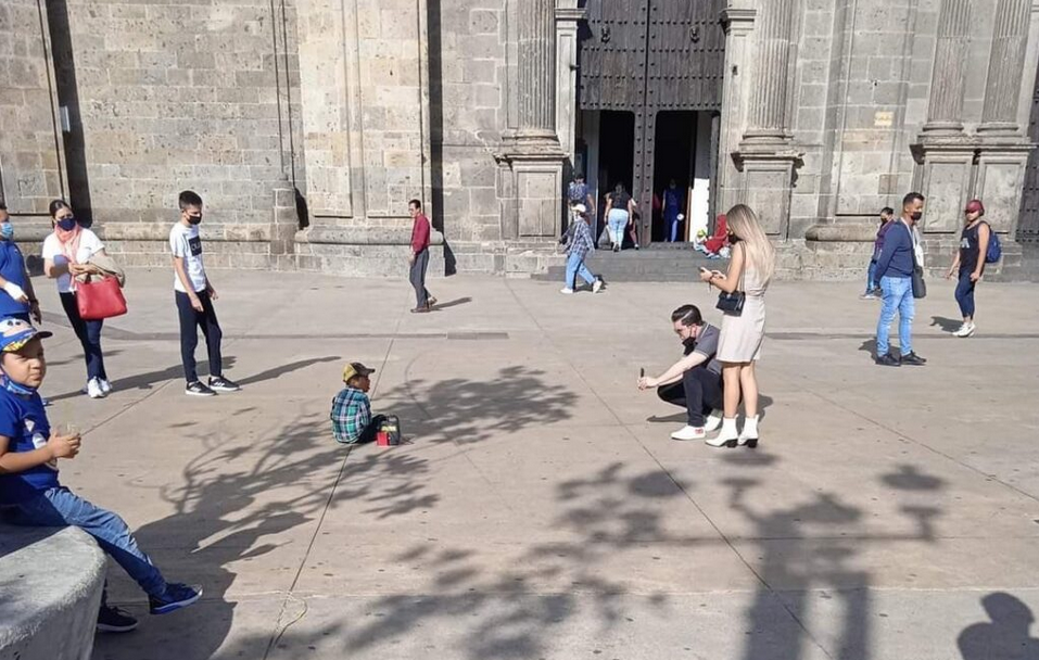 Una pareja ha provocado el enojo y la indignación de varios cibernautas luego de que se compartiera una imagen en la que se muestra a los jóvenes fotografiando a un niño que pedía dinero afuera de una iglesia de Guadalajara, Jalisco.