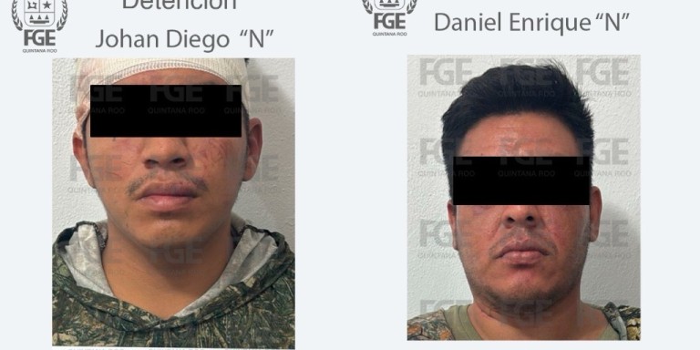 Johan Diego “N” y Daniel Enrique “N” fueron detenidos tras intentar robar un establecimiento ubicado sobre la carretera Reforma Agraria-Puerto Juárez, en el kilómetro 315 del municipio de Puerto Morelos.