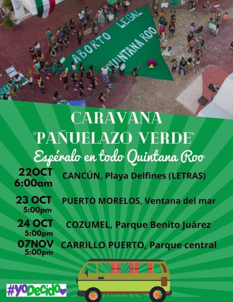 En su gira por algunos municipios de Quintana Roo, la Red Feminista Quintanarroense visitará Felipe Carrillo Puerto con “La Caravana del Pañuelo Verde”, su visita está agendada para el 07 de noviembre.