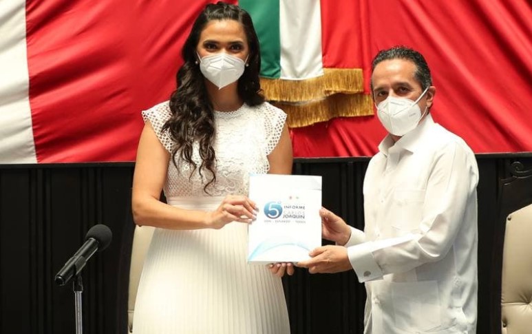 El gobernador Carlos Joaquín cumplió con el artículo 66 de la Constitución Política del Estado Libre y Soberano de Quintana Roo al entregar ante los diputados de la LVI Legislatura del Congreso del Estado el 5º Informe de rendición y fiscalización de cuentas que guarda la administración pública.