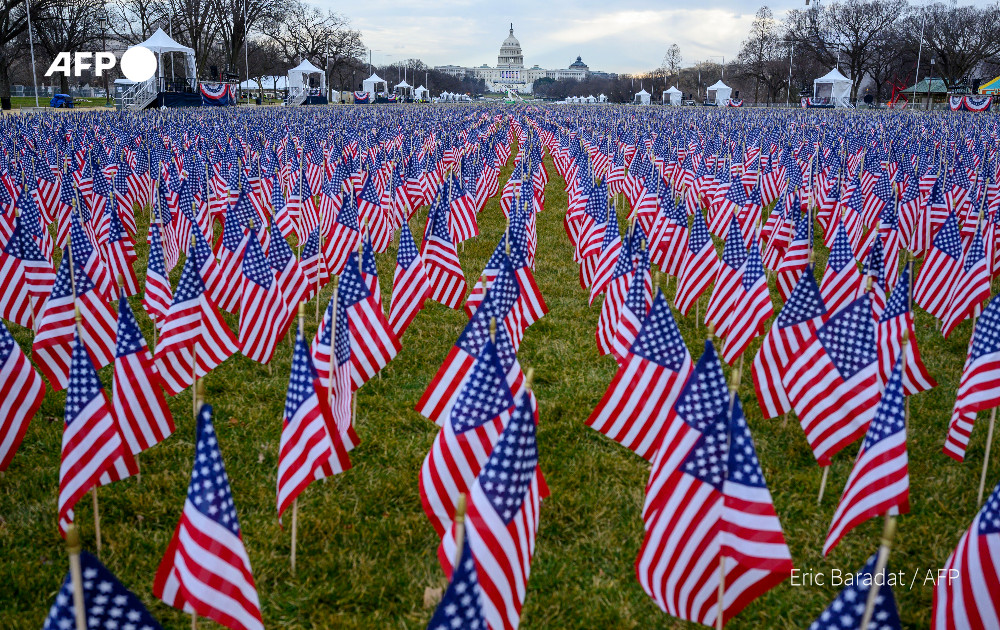 Un «campo de banderas» ha sido desplegado frente al Capitolio para la ceremonia de la toma de posesión del presidente electo de Estados Unidos, Joe Biden, que se celebrará este miércoles 20 de enero.
