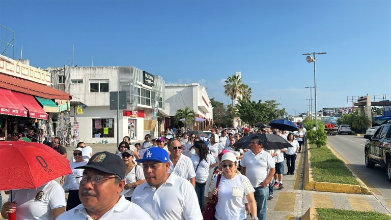 Este 22 de febrero del 2025, alrededor de 900 docentes marchan sobre la avenida De Los Héroes en Chetumal en rechazo a la reforma de la Ley del ISSSTE.