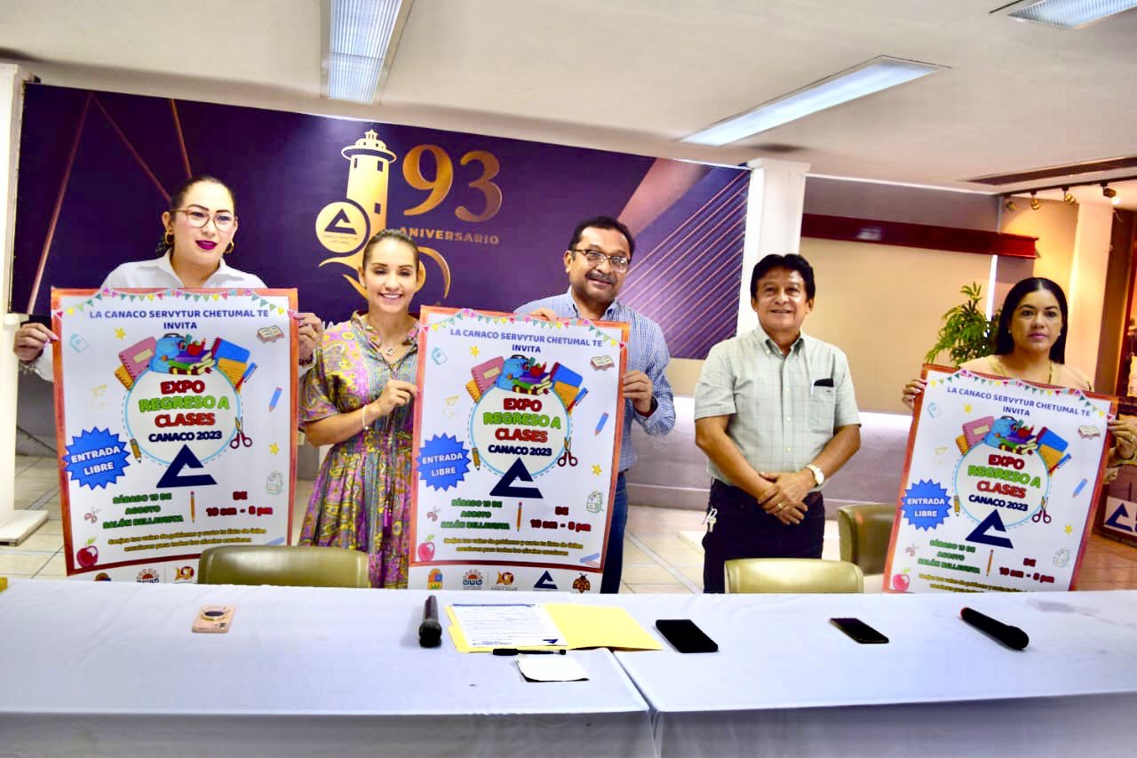 Durante la conferencia de prensa, informó a su vez que para el sábado 19 de agosto será celebrado con el respaldo de la Asociación Civil Comuna Quintana Roo, en el salón Bellavista la Expo Regreso a Clases Canaco 2023 con entrada gratuita para todos los padres de familia interesados en adquirir útiles escolares; en el evento participarán más de 80 papelerías afiliadas a la Canaco Servytur Chetumal autorizadas para recibir los vales escolares, así como otras empresas relacionadas con el sector educativo.