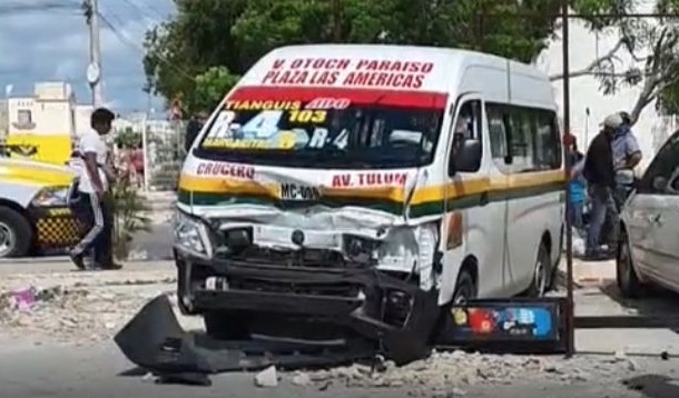 La mañana de este sábado se registró un accidente vial en un cruce de la Supermanzana 259, con saldo de al menos tres personas lesionadas. El siniestro fue entre una urvan de la Ruta 4 del transporte público y un auto particular color azul tipo Derby.