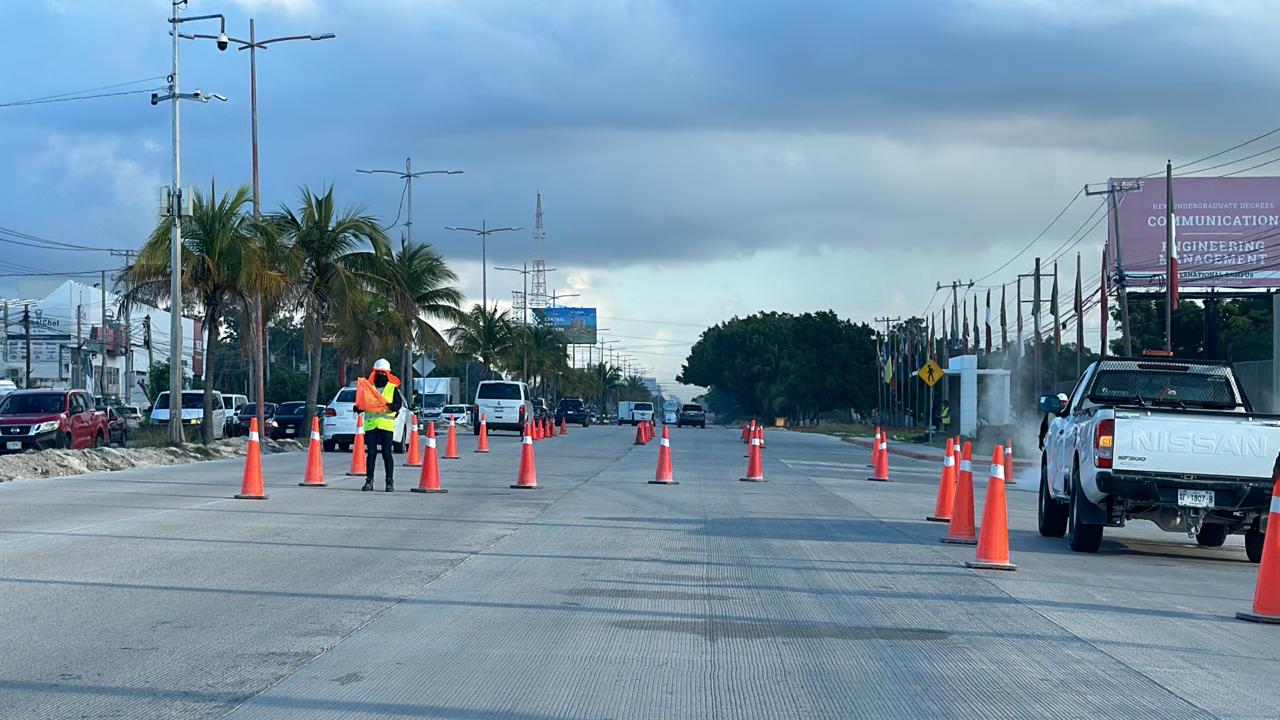 La Dirección de Tránsito Municipal informó del cierre parcial que se realiza en los carriles de baja y central, en el sentido de sur a norte (PDC – Cancún), a la altura de la Universidad Anáhuac, debido a trabajos que se realizan en dicha vialidad.
