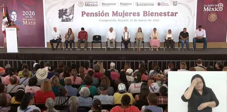La presidenta Claudia Sheinbaum sigue su gira por Nayarit este fin de semana, donde encabeza la entrega de Pensión Mujeres del Bienestar en el municipio de compostela.